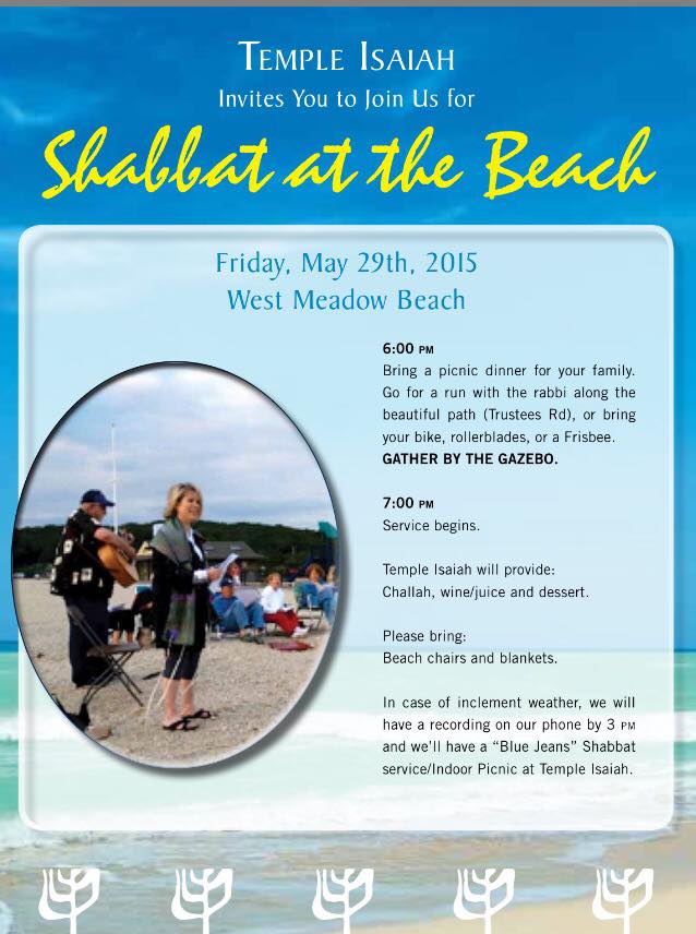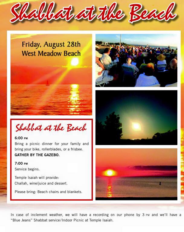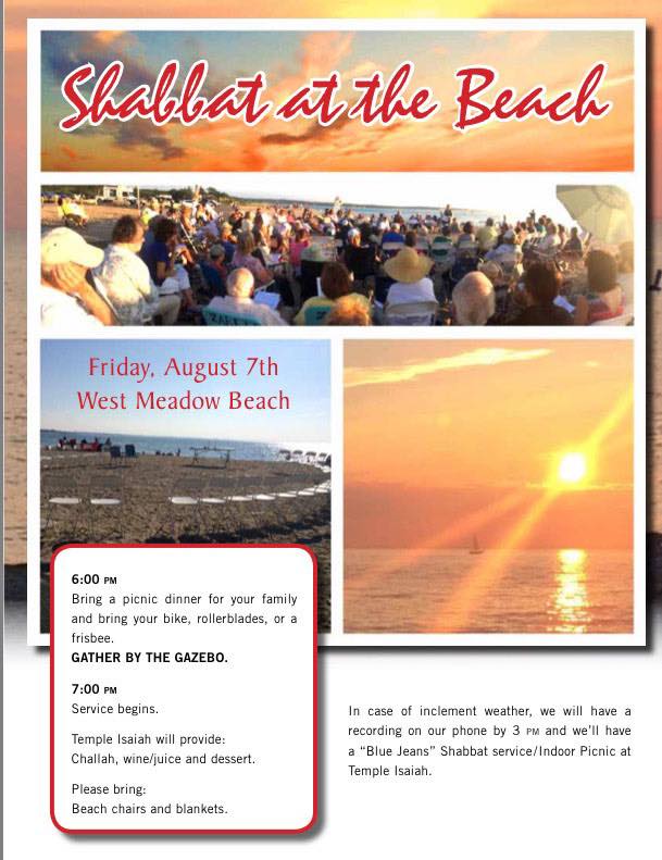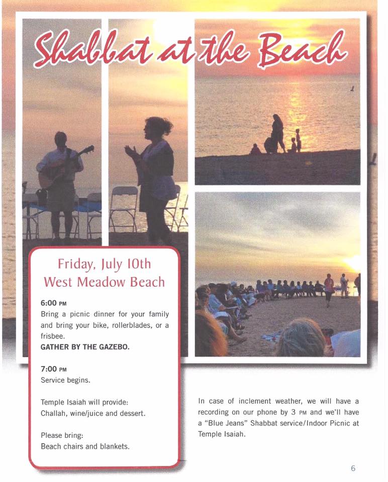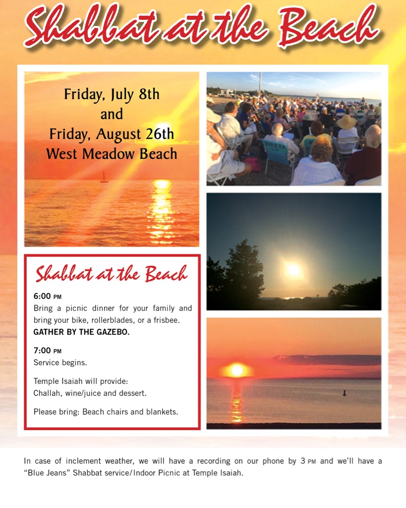 Temple Isaiah of Stony Brook, NY is located on the north shore of the Long Island Sound. We have the perfect scenic spot to hold erev Shabbat services once/month at West Meadow Beach. We gather for a picnic dinner, hiking, walking, community and friendship, followed by a beautiful and serene musical Shabbat service as we watch the sun slowly set over the water.